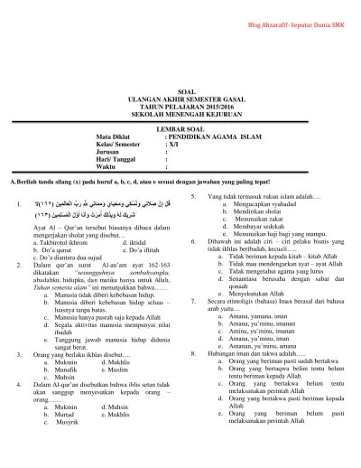 Check spelling or type a new query. We did not find results for: Maybe you would like to learn more about one of these? Soal fiqih ma kelas x semester 2.